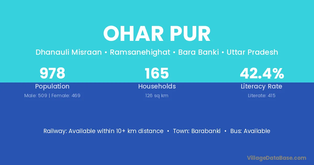Ohar Pur village has a total population of 978 people, of which 509 are males and 469 are females.
