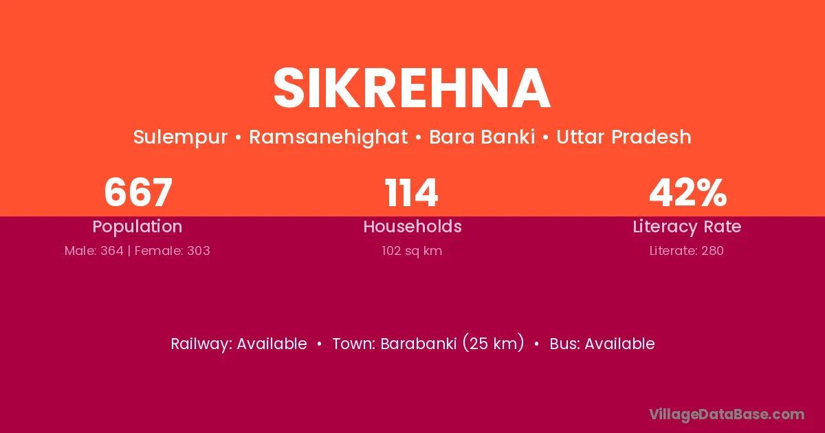 Barabanki (25 km) is the nearest town to Sikrehna village for major economic activities and is located approximately 25 km away.
