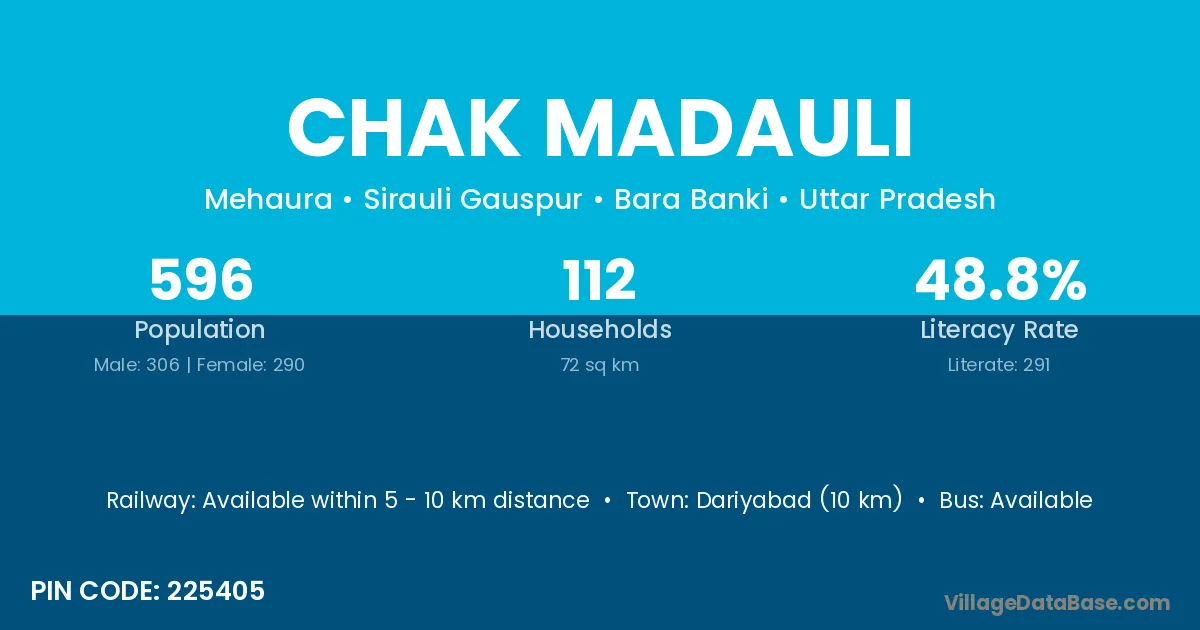 Chak Madauli village has a total population of 596 people, of which 306 are males and 290 are females.