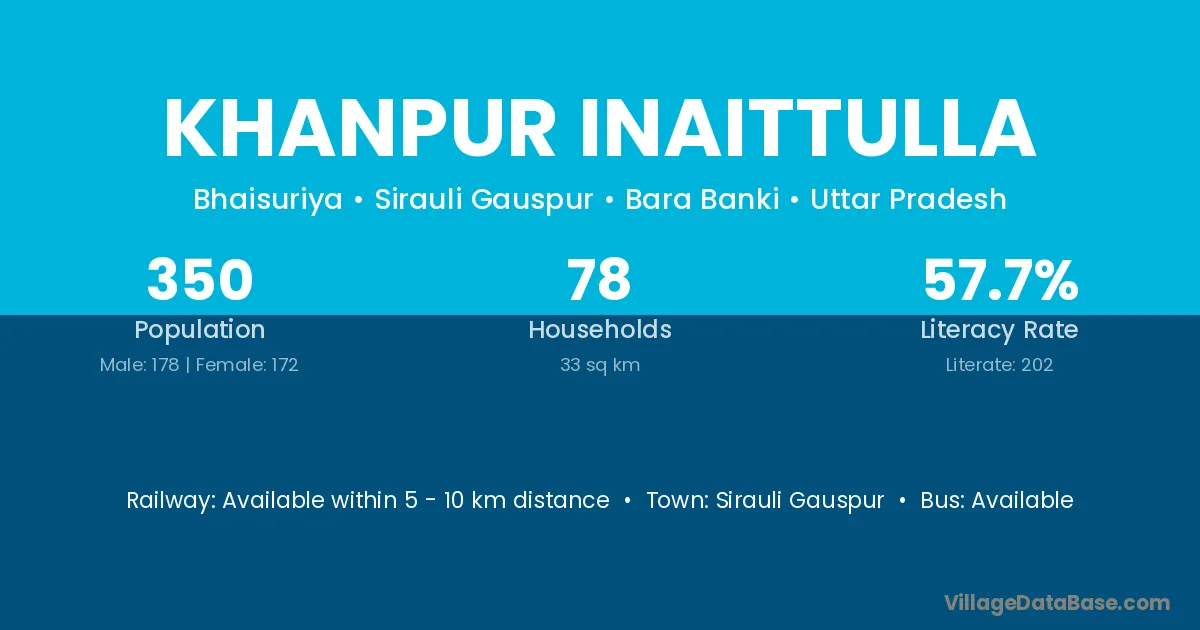 Khanpur Inaittulla village has a total population of 350 people, of which 178 are males and 172 are females.