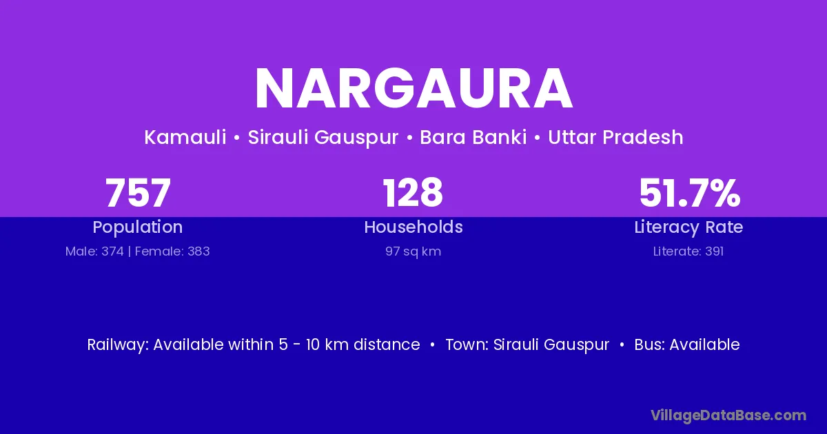 Nargaura village has a total population of 757 people, of which 374 are males and 383 are females.