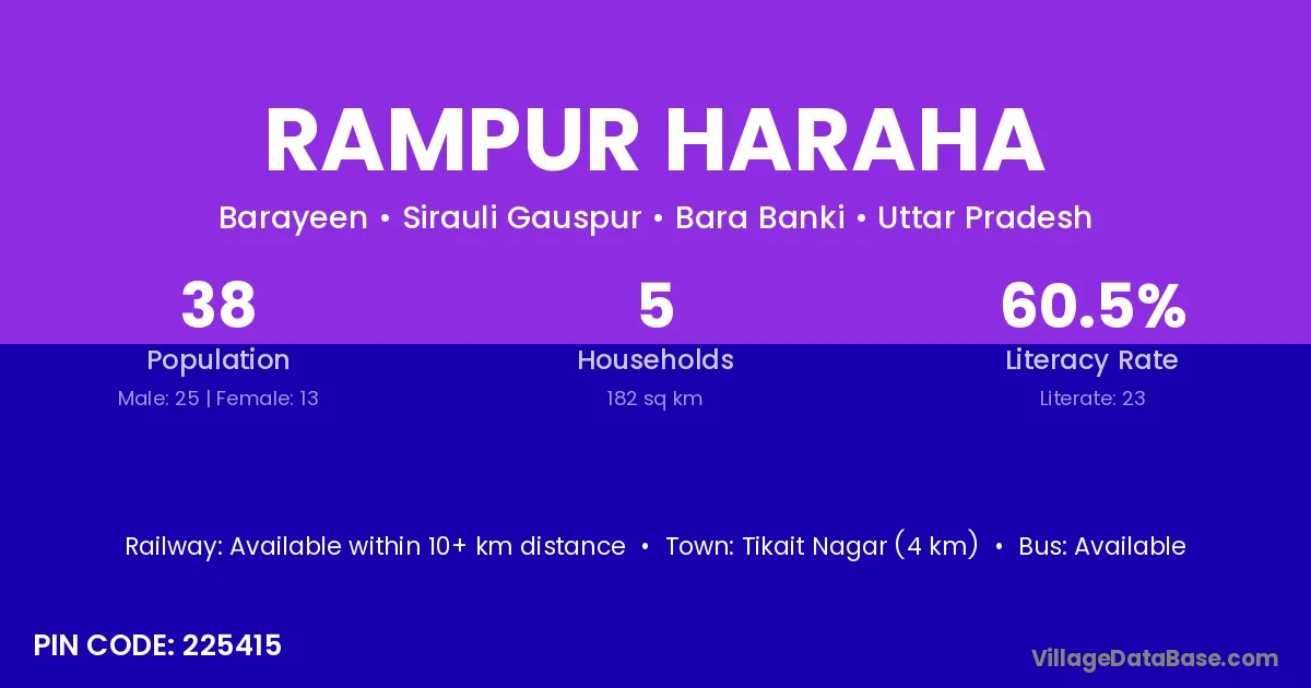 Tikait Nagar (4 km) is the nearest town to Rampur Haraha village for major economic activities and is located approximately 4 km away.