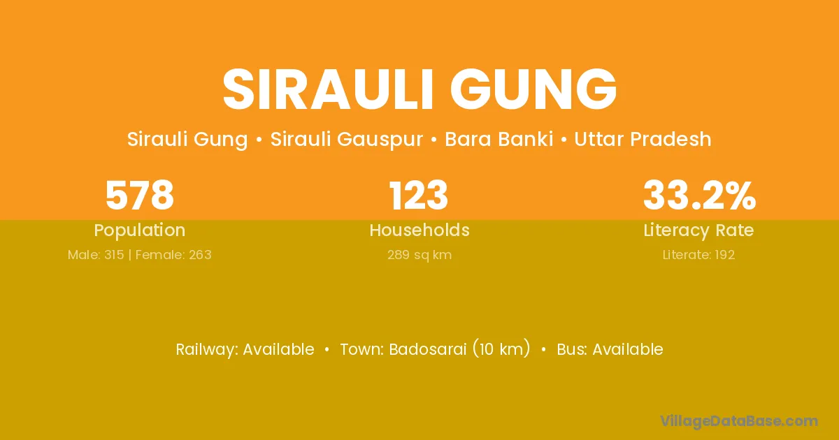 Badosarai (10 km) is the nearest town to Sirauli Gung village for major economic activities and is located approximately 10 km away.