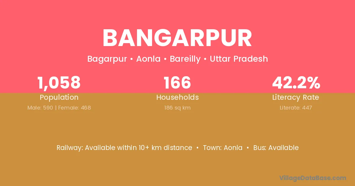 Aonla is the nearest town to Bangarpur village for major economic activities