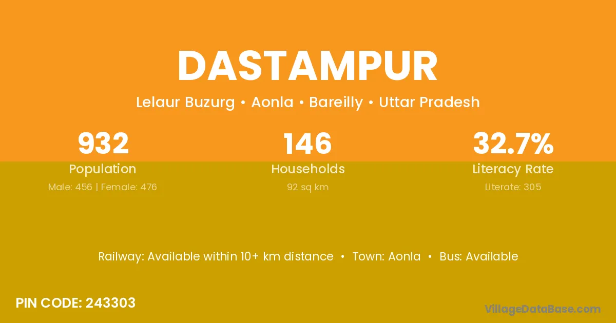 Aonla is the nearest town to Dastampur village for major economic activities