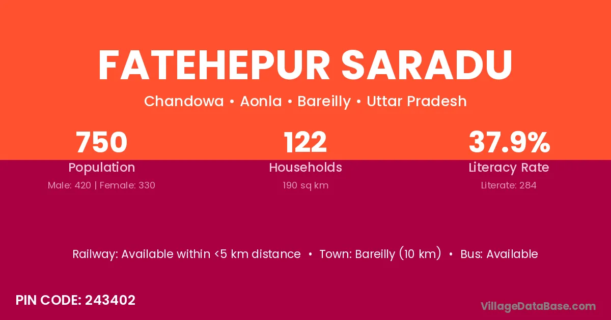 Fatehepur Saradu village has a total population of 750 people, of which 420 are males and 330 are females.