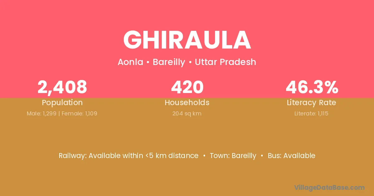 Bareilly is the nearest town to Ghiraula village for major economic activities