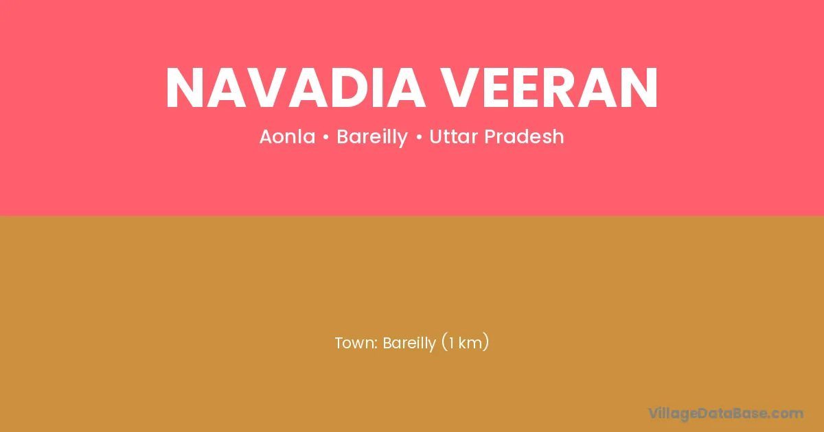 Bareilly (1 km) is the nearest town to Navadia Veeran village for major economic activities and is located approximately 1 km away.