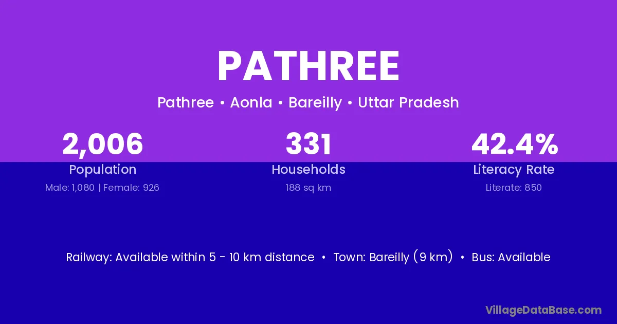 Bareilly (9 km) is the nearest town to Pathree village for major economic activities and is located approximately 9 km away.