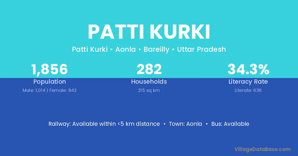 Aonla is the nearest town to Patti Kurki village for major economic activities