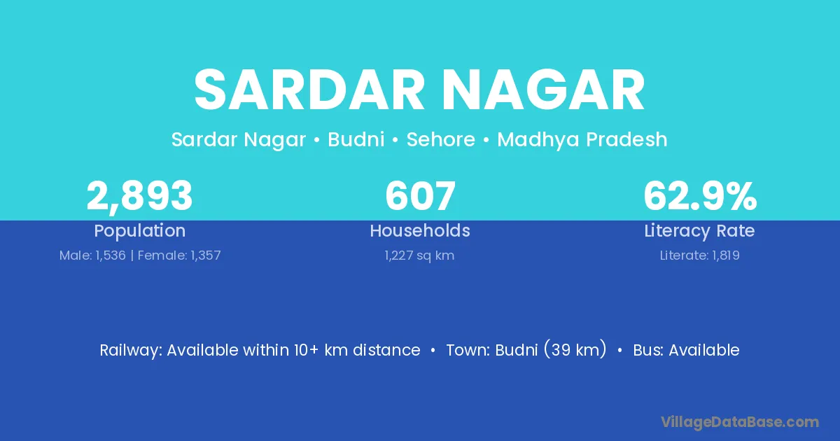The literacy rate of Sardar Nagar village is 45.37%. Male literacy stands at 55.60% and female literacy at 33.70%.