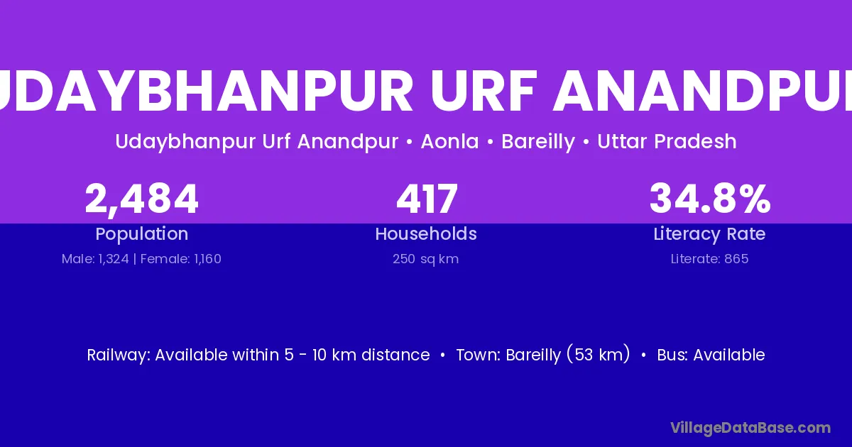 Udaybhanpur Urf Anandpur village has a total population of 2,484 people, of which 1,324 are males and 1,160 are females.