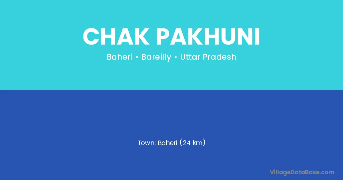 Baheri (24 km) is the nearest town to Chak Pakhuni village for major economic activities and is located approximately 24 km away.