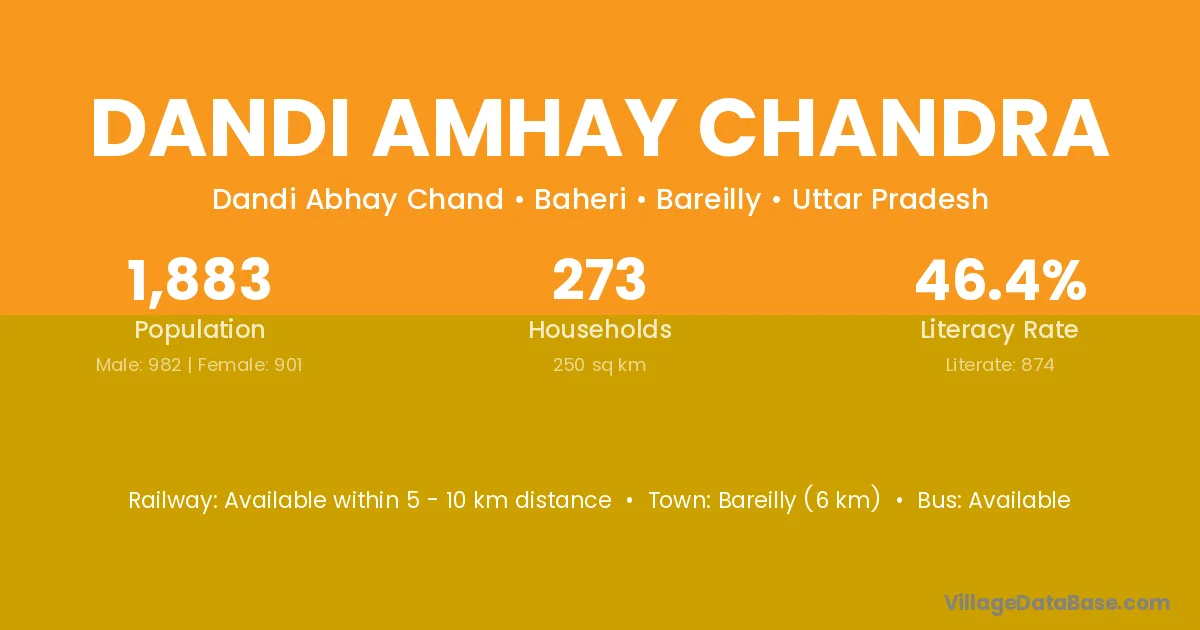 Bareilly (6 km) is the nearest town to Dandi Amhay Chandra village for major economic activities and is located approximately 6 km away.