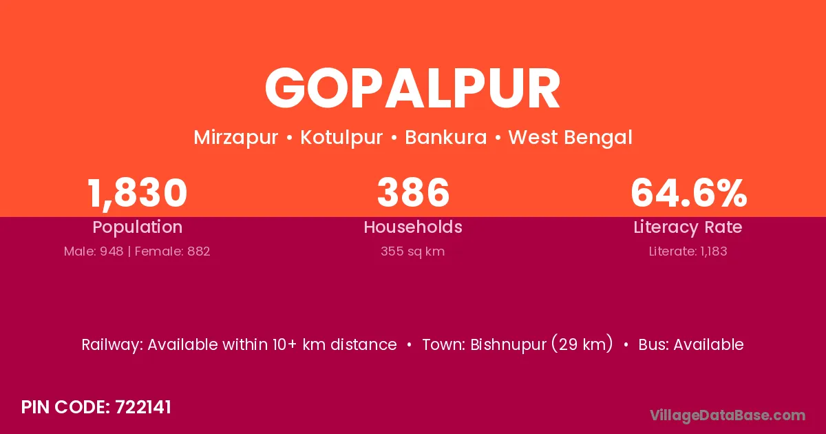 Gopalpur village has a total population of 394 people, of which 202 are males and 192 are females.