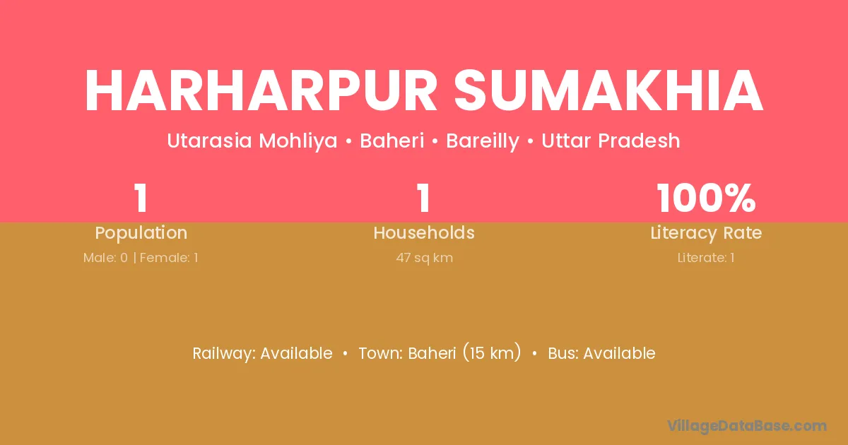 Baheri (15 km) is the nearest town to Harharpur Sumakhia village for major economic activities and is located approximately 15 km away.