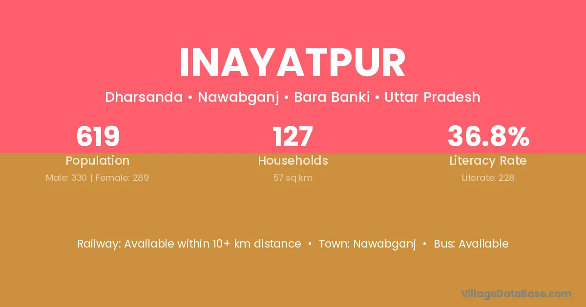 The literacy rate of Inayatpur village is 43.53%. Male literacy stands at 52.44% and female literacy at 34.12%.