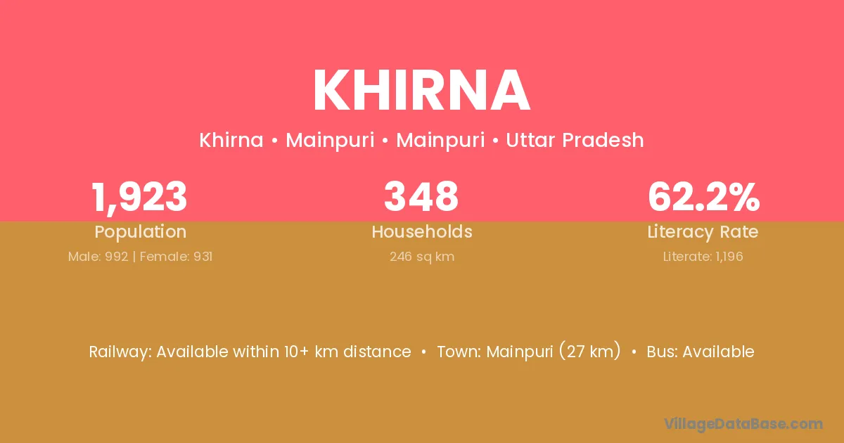 Riya (3 km) is the nearest town to Khirna village for major economic activities and is located approximately 3 km away.