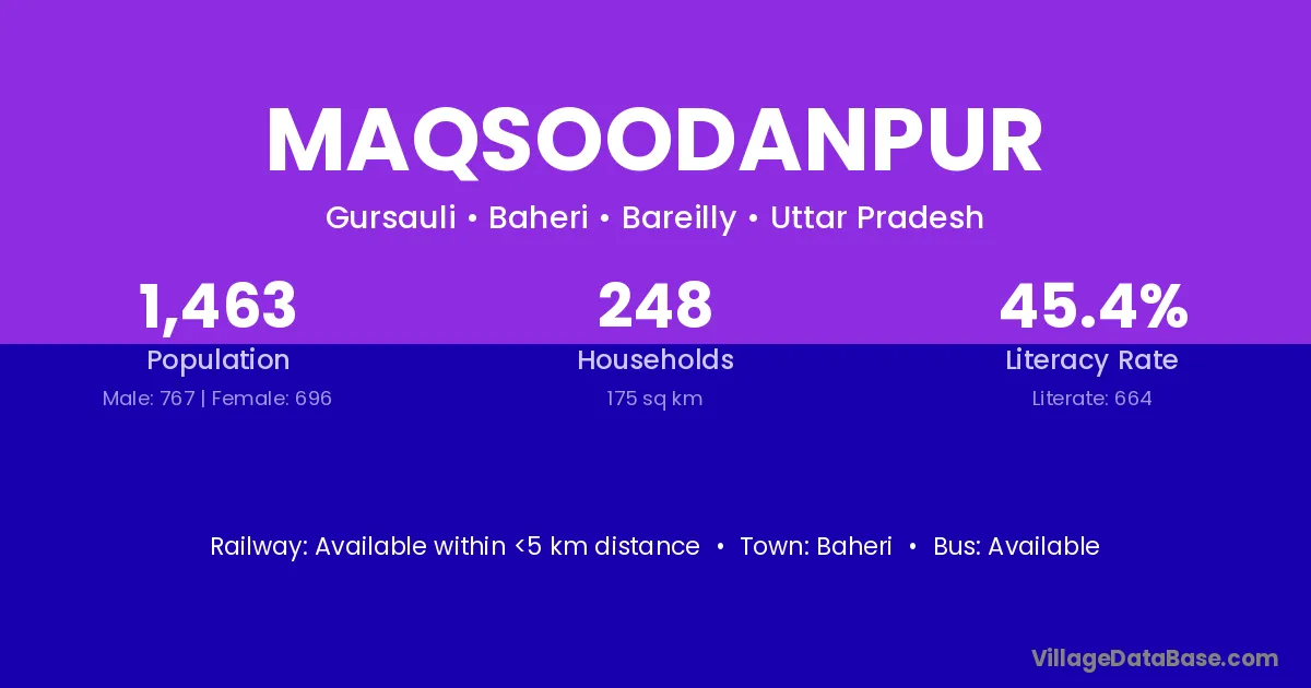 Maqsoodanpur village has a total population of 1,463 people, of which 767 are males and 696 are females.