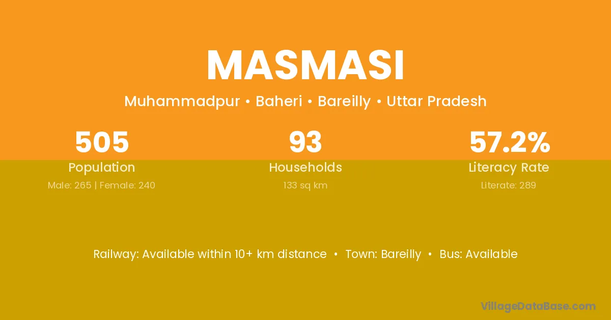Bareilly is the nearest town to Masmasi village for major economic activities