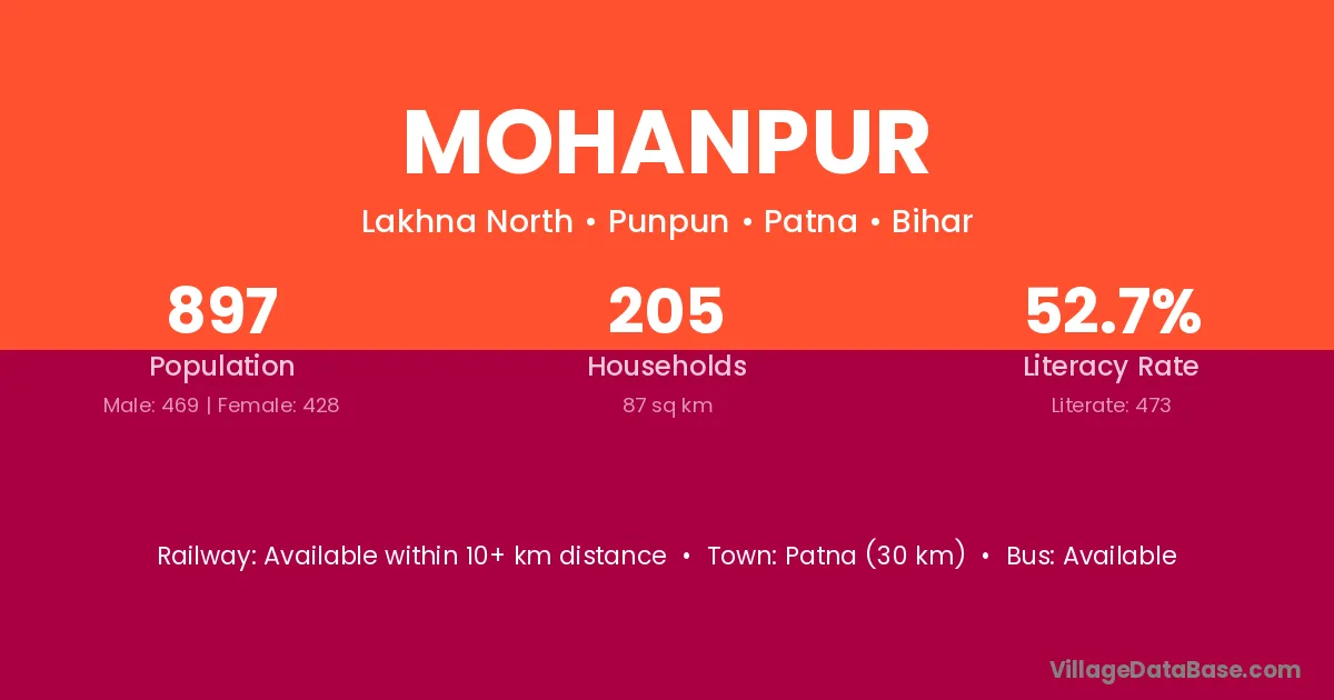 Mohanpur village has a total population of 3,861 people, of which 2,043 are males and 1,818 are females.