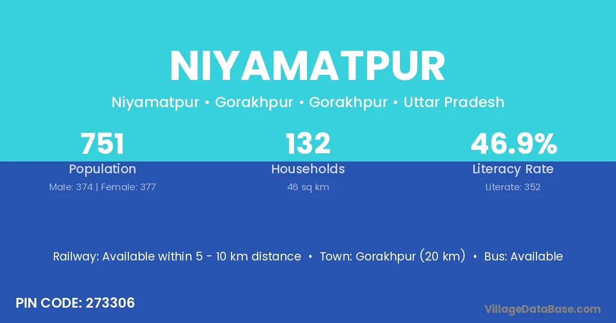 Bareilly (5 km) is the nearest town to Niyamatpur village for major economic activities and is located approximately 5 km away.