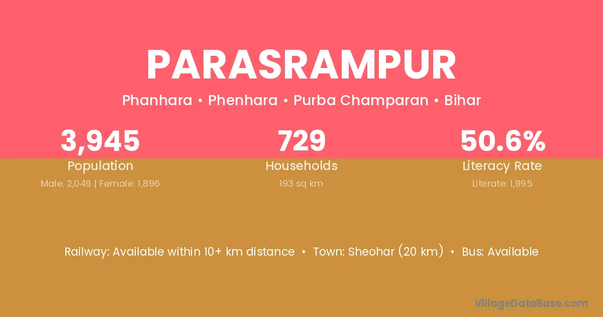 The literacy rate of Parasrampur village is 58.89%. Male literacy stands at 69.40% and female literacy at 46.77%.