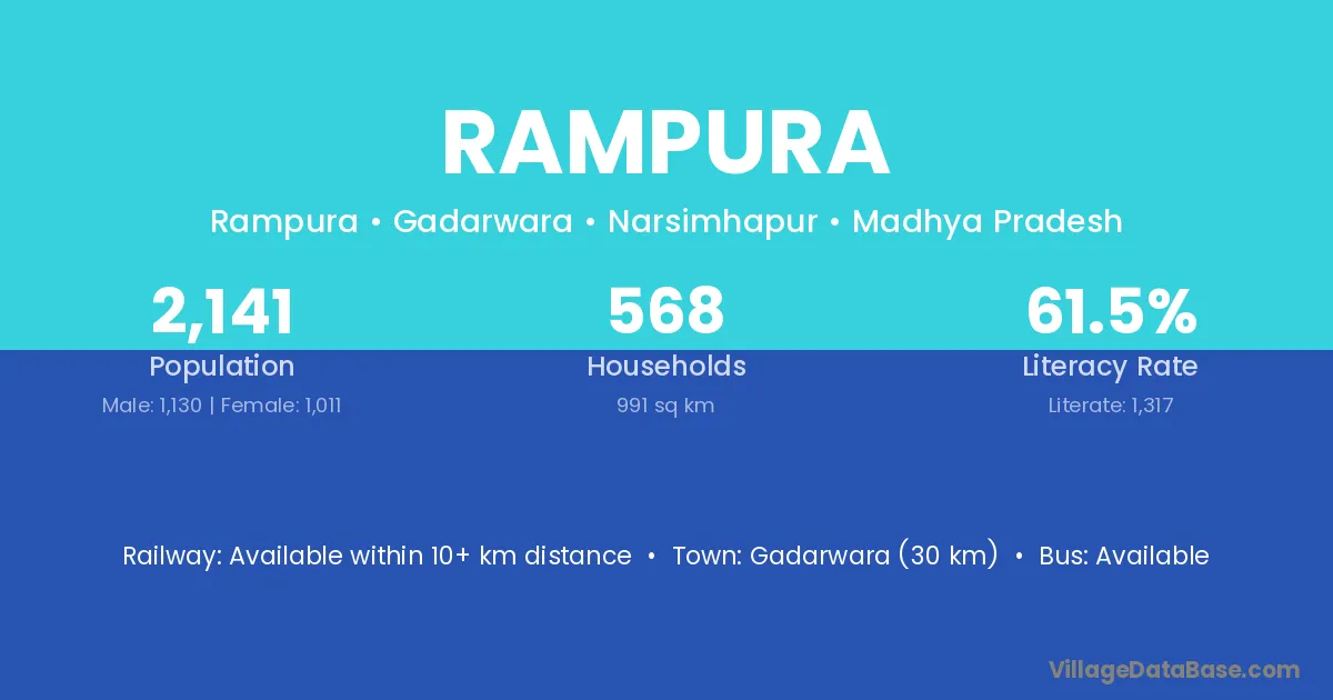 The literacy rate of Rampura village is 55.92%. Male literacy stands at 67.98% and female literacy at 39.64%.