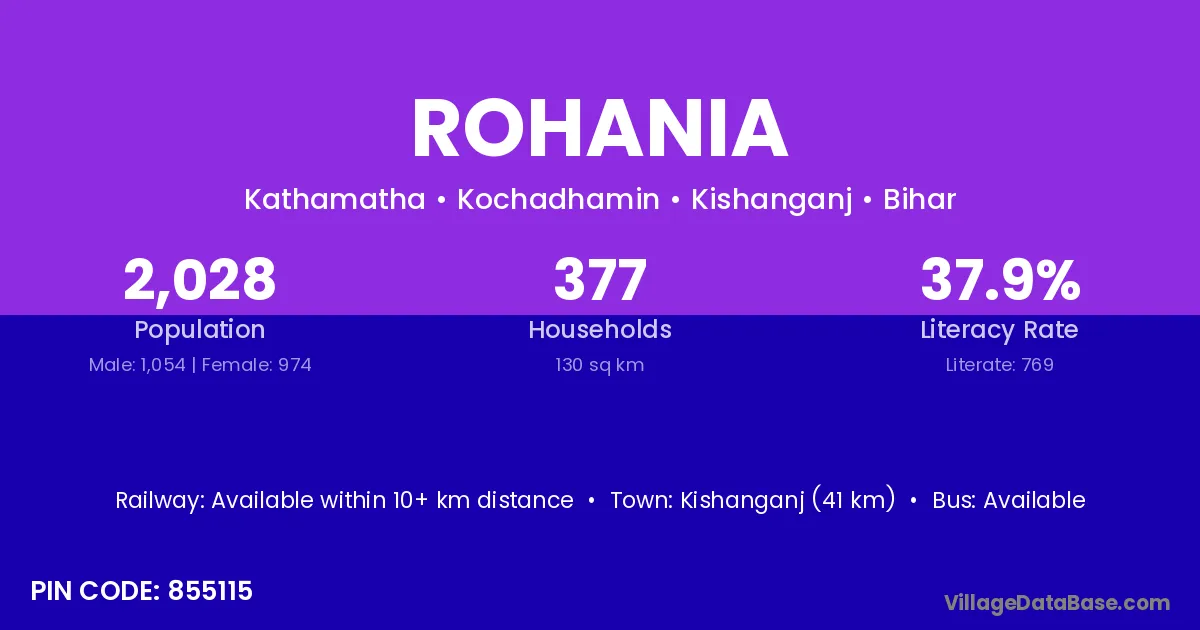 Baheri (14 km) is the nearest town to Rohania village for major economic activities and is located approximately 14 km away.