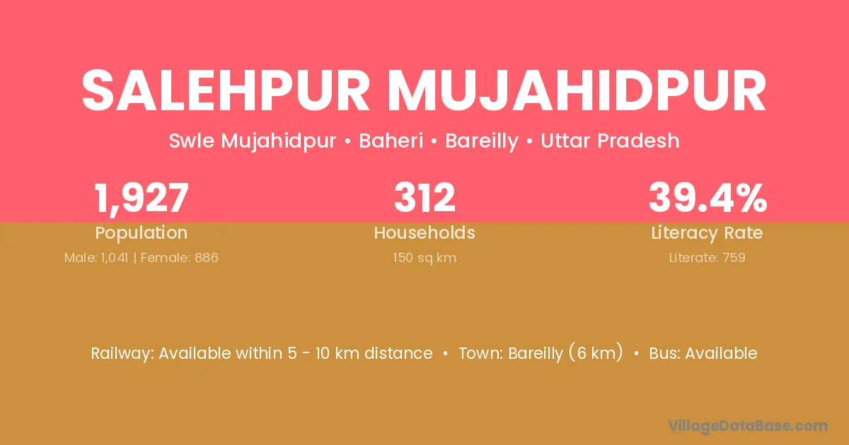 Bareilly (6 km) is the nearest town to Salehpur Mujahidpur village for major economic activities and is located approximately 6 km away.