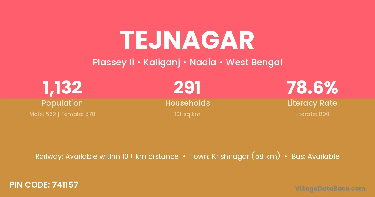 Tejnagar village has a total population of 785 people, of which 404 are males and 381 are females.