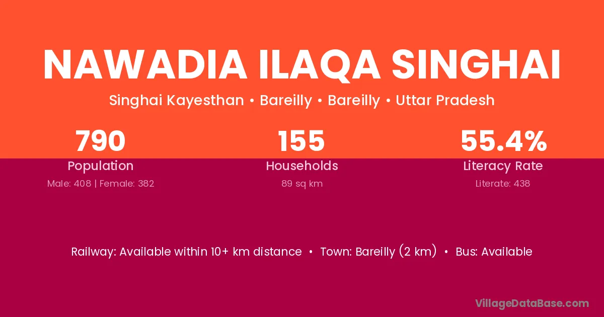 Bareilly (2 km) is the nearest town to Nawadia Ilaqa Singhai village for major economic activities and is located approximately 2 km away.
