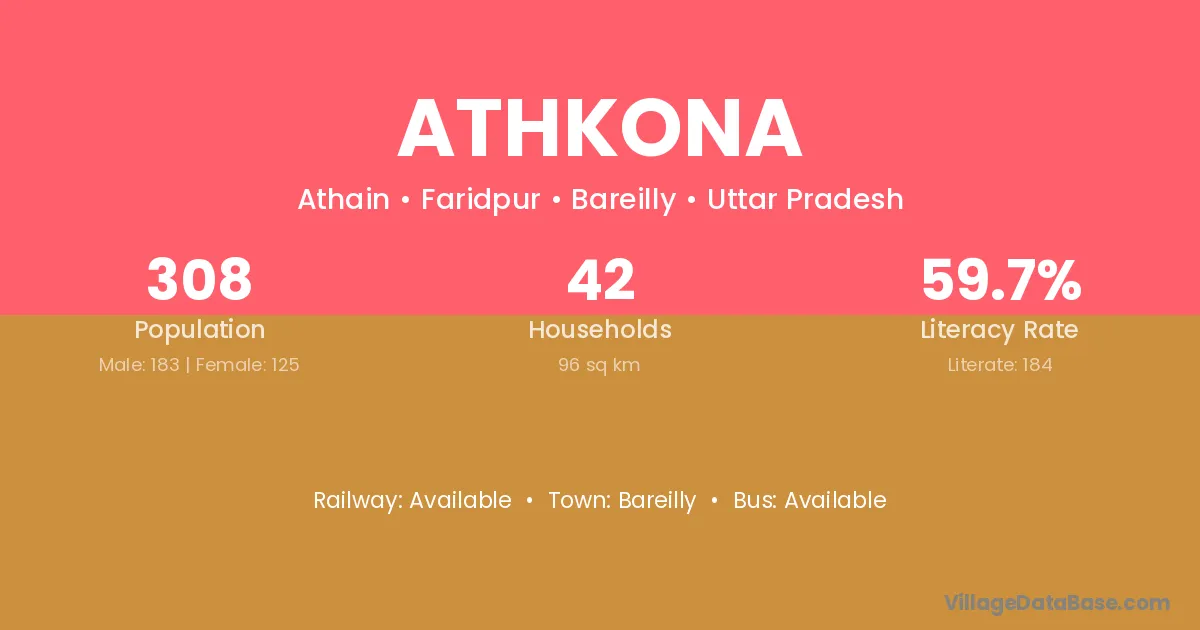 Athkona village has a total population of 308 people, of which 183 are males and 125 are females.