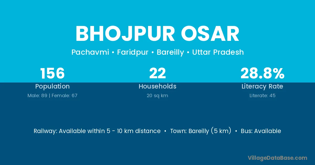 Bareilly (5 km) is the nearest town to Bhojpur Osar village for major economic activities and is located approximately 5 km away.