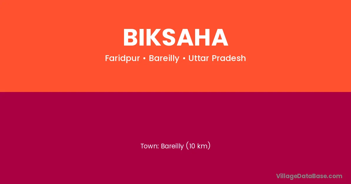 Bareilly (10 km) is the nearest town to Biksaha village for major economic activities and is located approximately 10 km away.