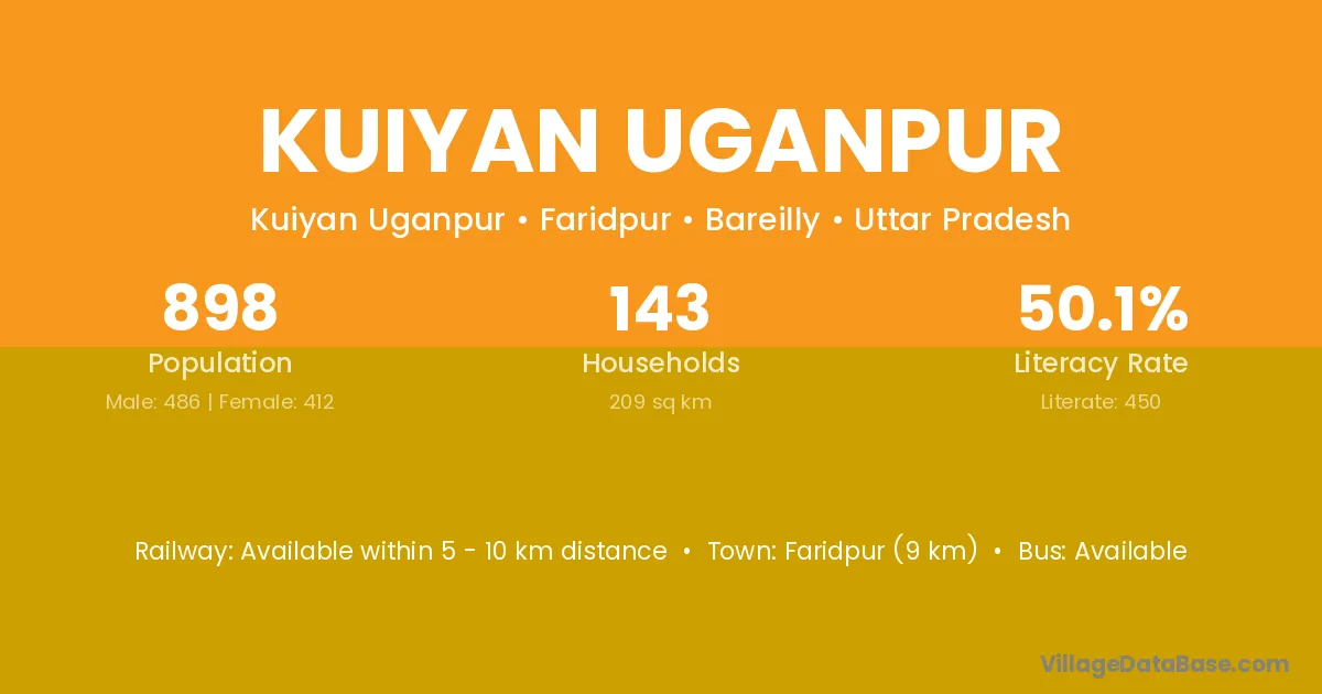 Faridpur (9 km) is the nearest town to Kuiyan Uganpur village for major economic activities and is located approximately 9 km away.