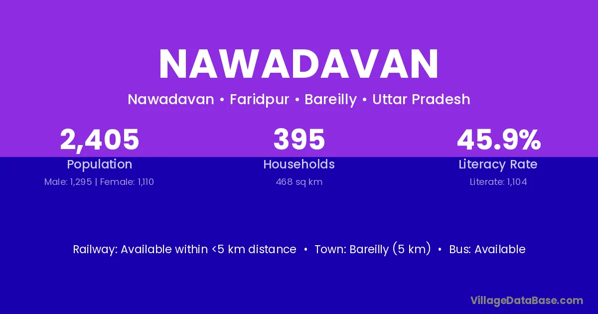 Bareilly (5 km) is the nearest town to Nawadavan village for major economic activities and is located approximately 5 km away.