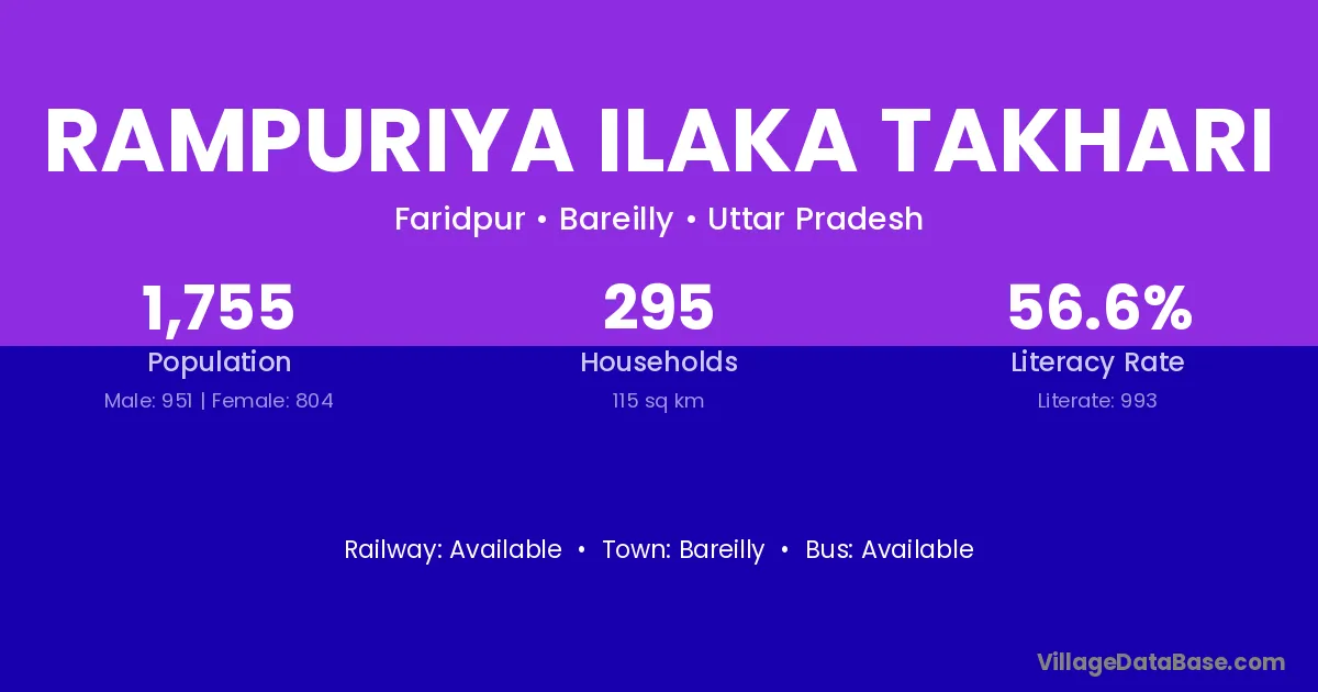 Bareilly is the nearest town to Rampuriya Ilaka Takhari village for major economic activities