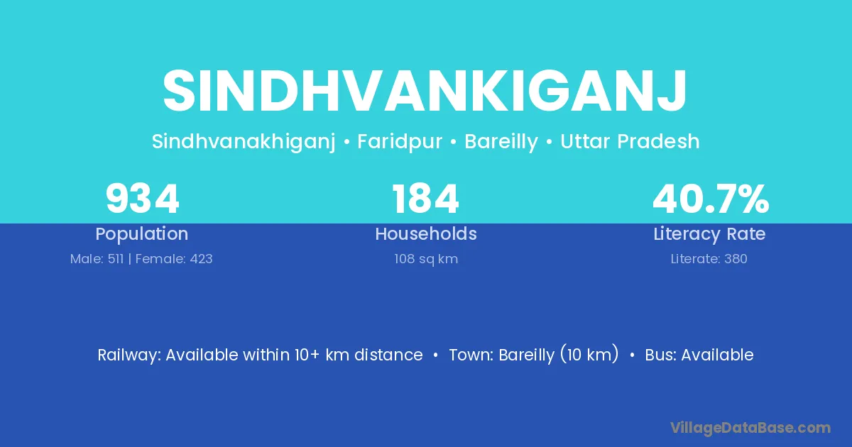 Bareilly (10 km) is the nearest town to Sindhvankiganj village for major economic activities and is located approximately 10 km away.