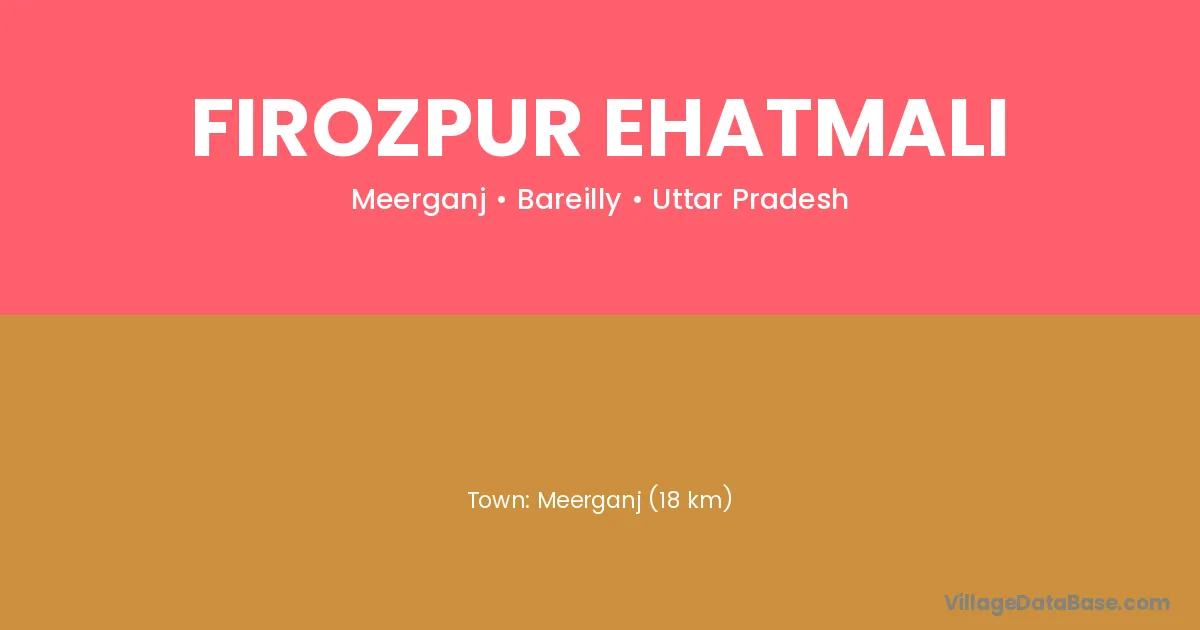 Meerganj (18 km) is the nearest town to Firozpur Ehatmali village for major economic activities and is located approximately 18 km away.