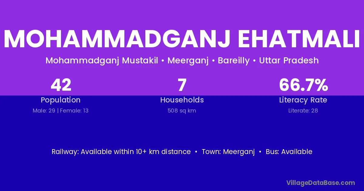 Meerganj is the nearest town to Mohammadganj Ehatmali village for major economic activities