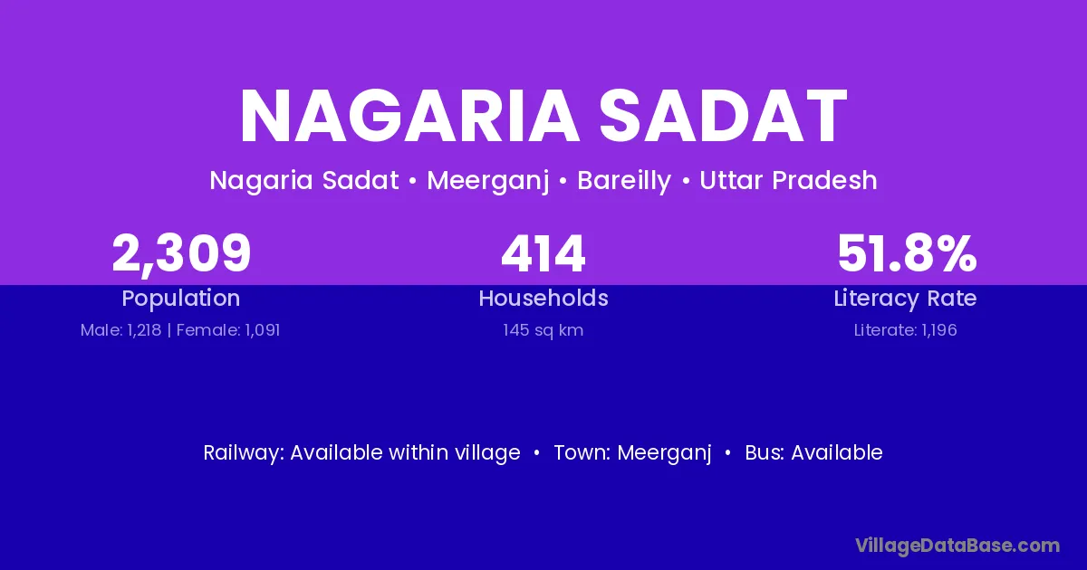 Nagaria Sadat village has a total population of 2,309 people, of which 1,218 are males and 1,091 are females.