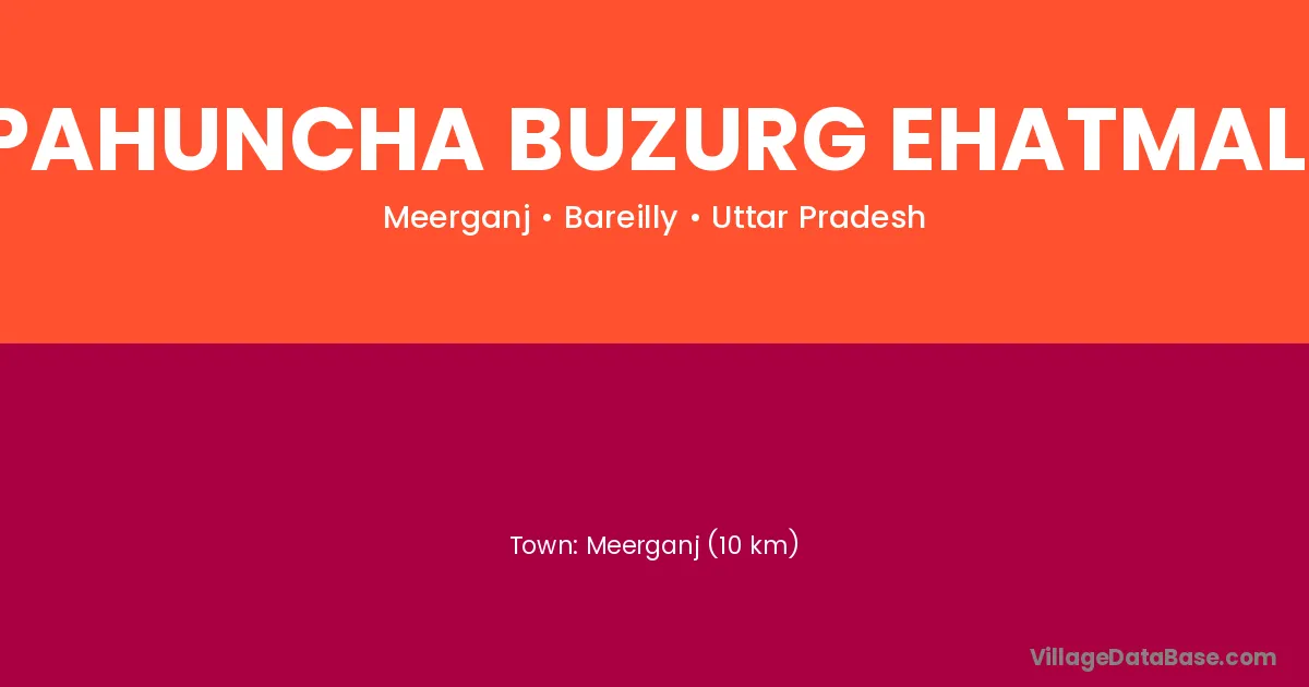 Meerganj (10 km) is the nearest town to Pahuncha Buzurg Ehatmali village for major economic activities and is located approximately 10 km away.