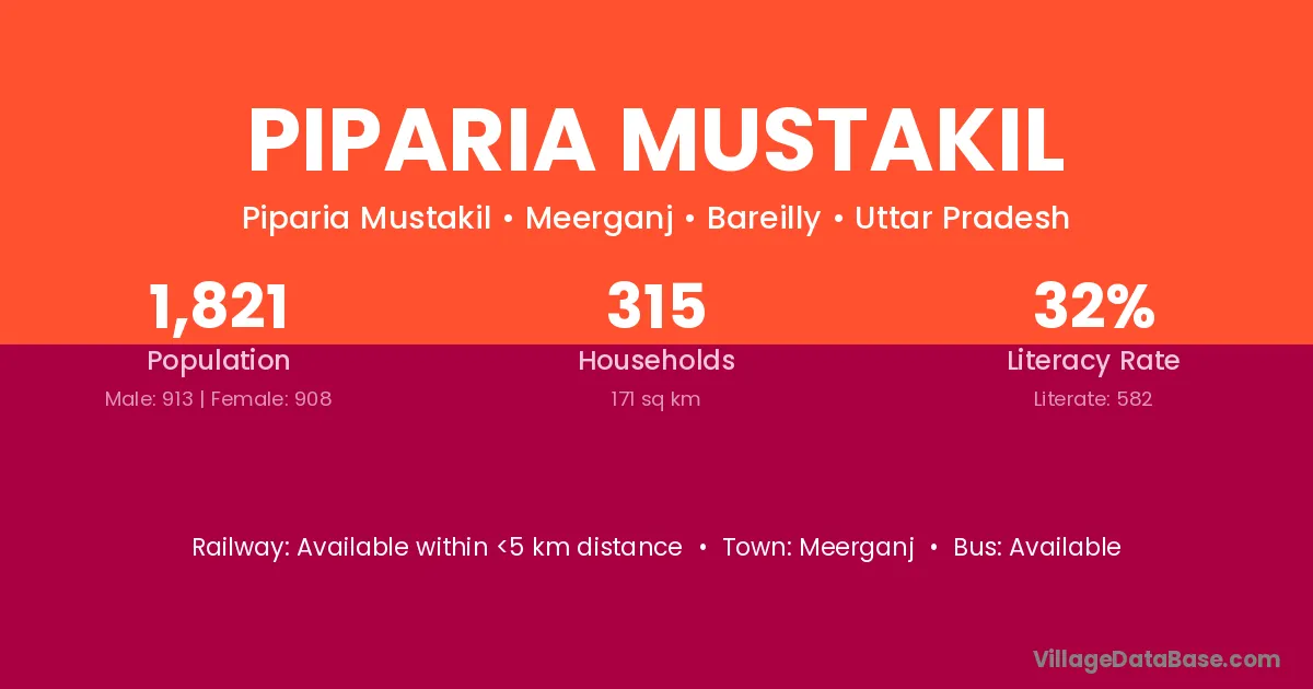 Meerganj is the nearest town to Piparia Mustakil village for major economic activities