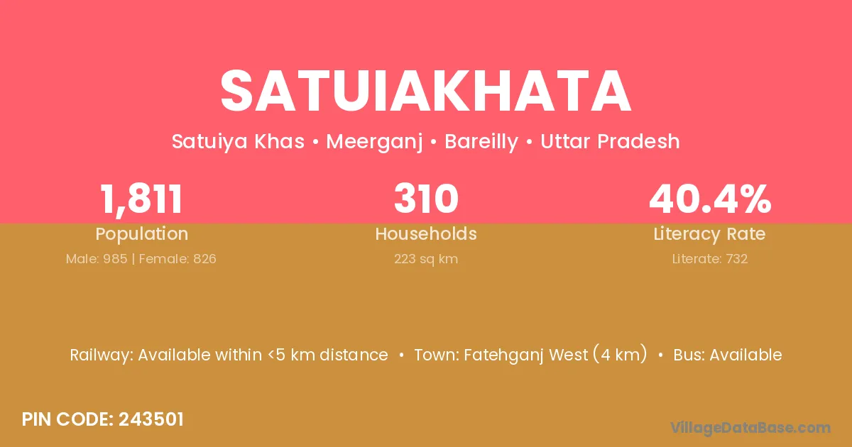 Fatehganj West (4 km) is the nearest town to Satuiakhata village for major economic activities and is located approximately 4 km away.