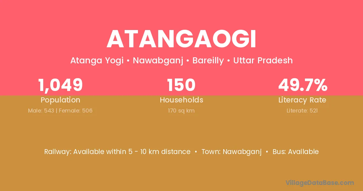 Atangaogi village has a total population of 1,049 people, of which 543 are males and 506 are females.