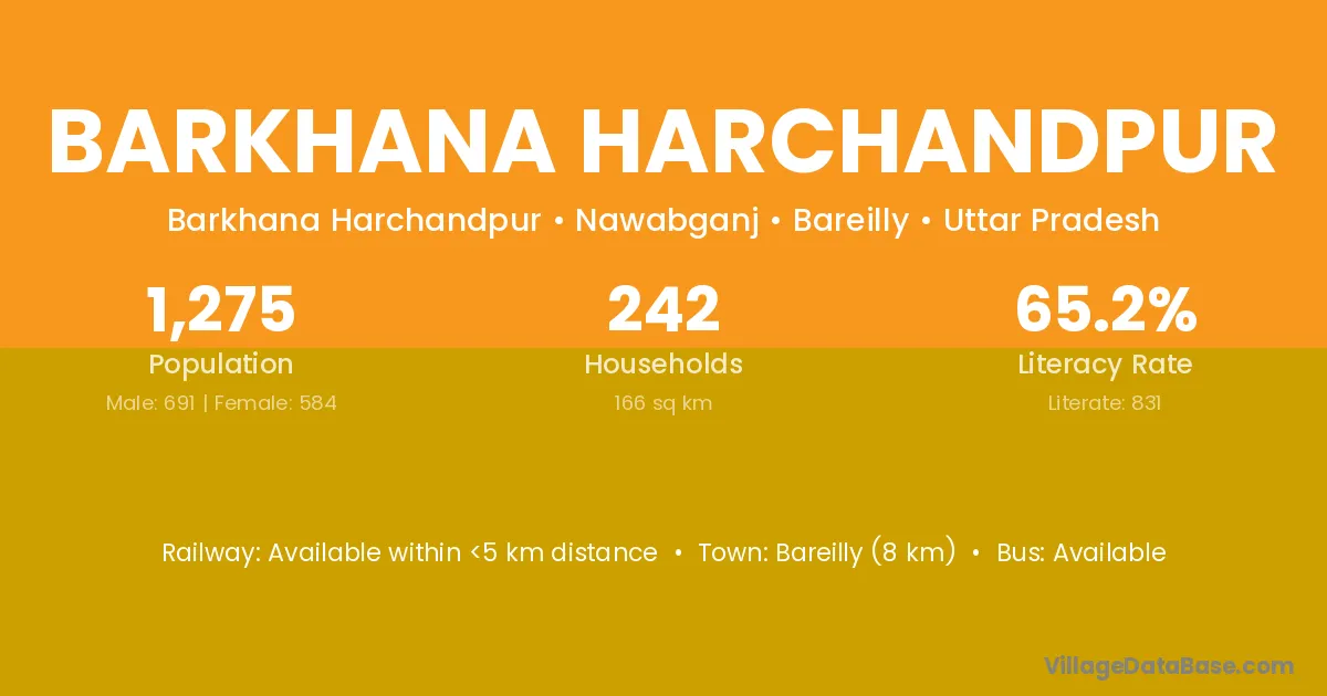 Bareilly (8 km) is the nearest town to Barkhana Harchandpur village for major economic activities and is located approximately 8 km away.