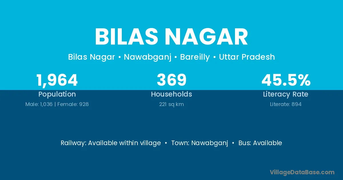 Bilas Nagar village has a total population of 1,964 people, of which 1,036 are males and 928 are females.