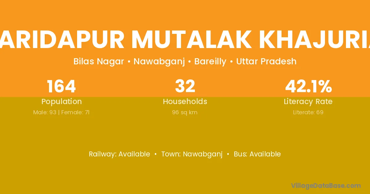 Faridapur Mutalak Khajuria village has a total population of 164 people, of which 93 are males and 71 are females.