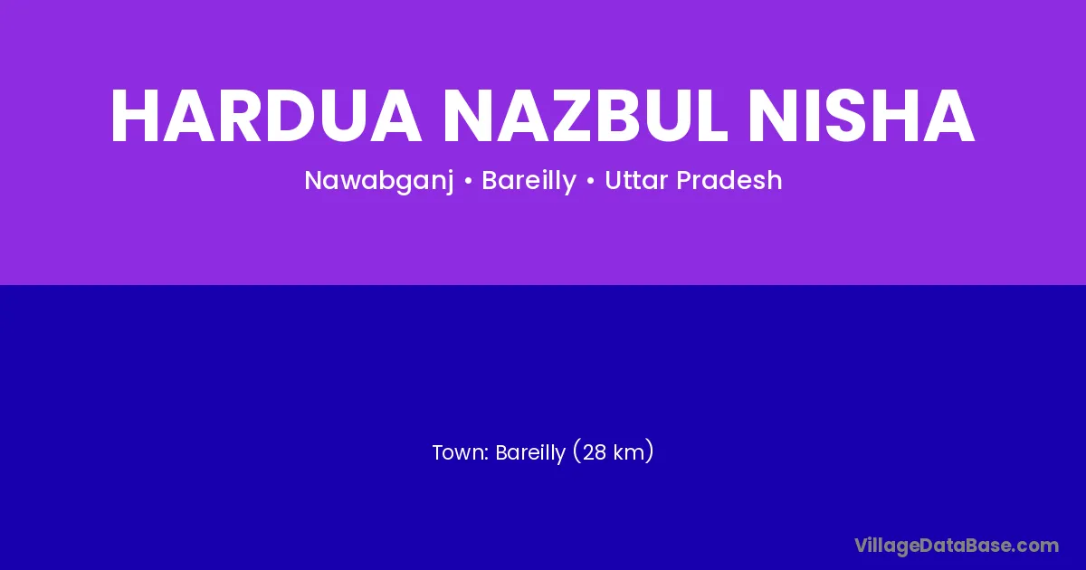 Bareilly (28 km) is the nearest town to Hardua Nazbul Nisha village for major economic activities and is located approximately 28 km away.